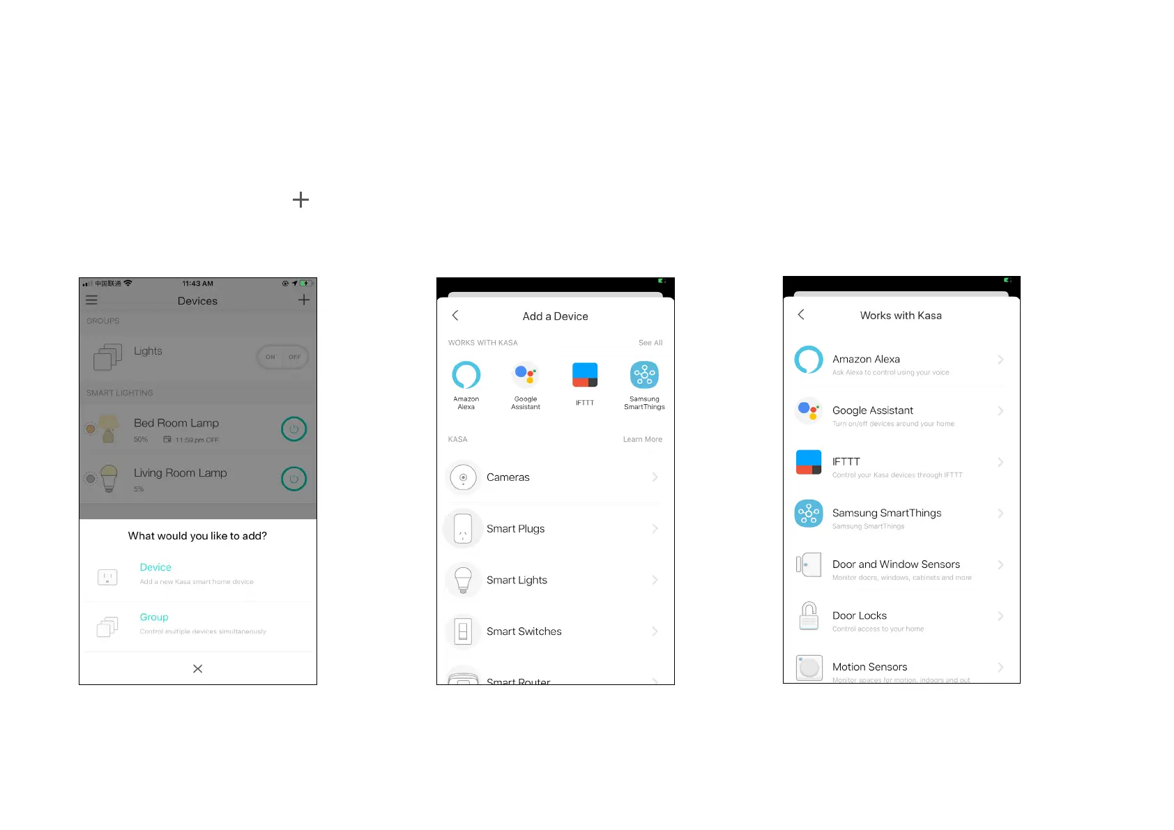 Launch the Kasa app and go to > Device > WORKS WITH KASA > See All for detailed instructions.