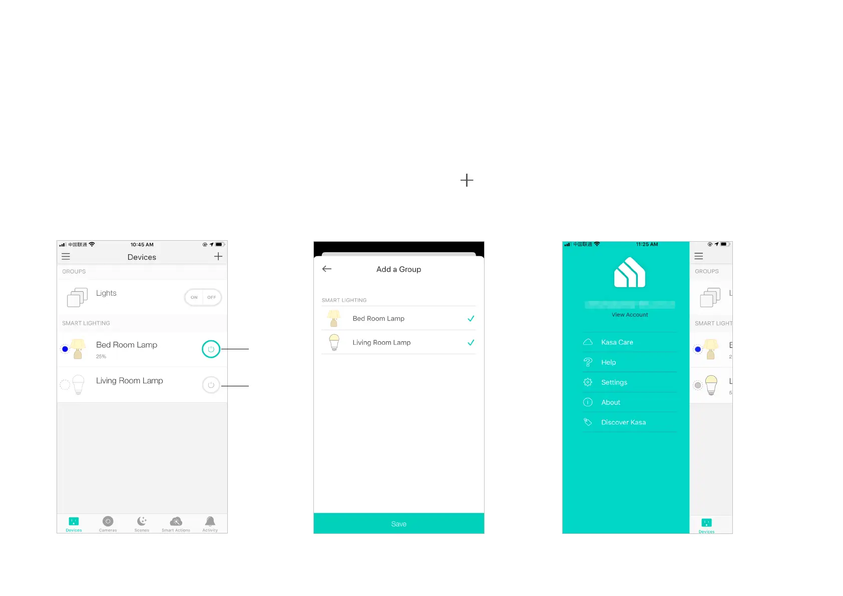 After you successfully set up your Smart Bulb, you will see the Devices page on the Kasa app. You can add new devices, control multiple devices