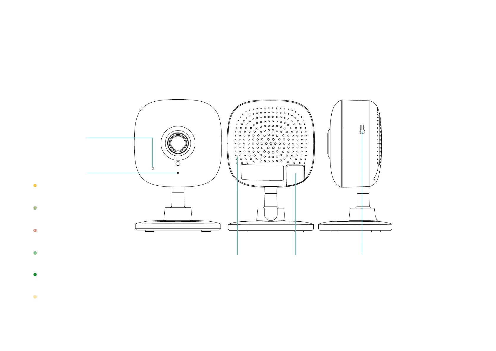 Kasa Smart Spot has a system LED that changes color according to its status, a microphone, a speaker, a power cord interface,and a RESET button.