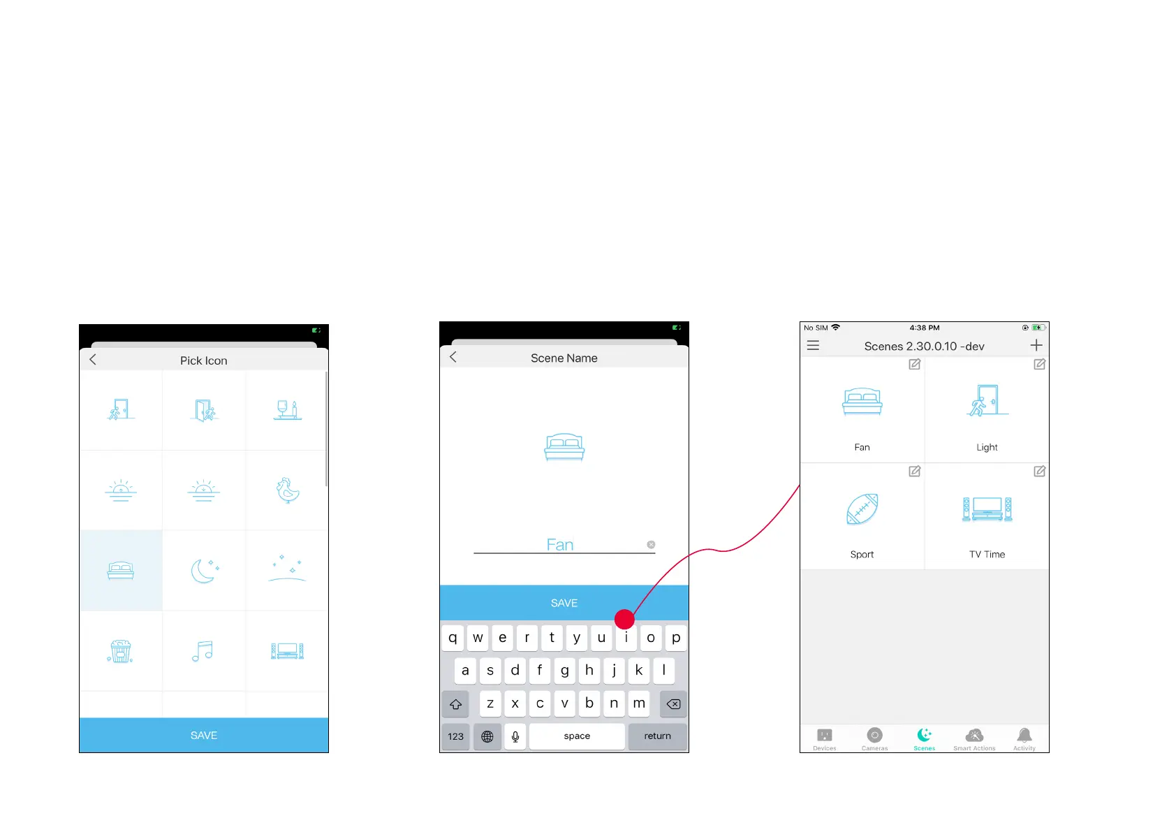4. Pick an icon for your scene. 5. Name your scene. 6. Your scene is created and is displayed in