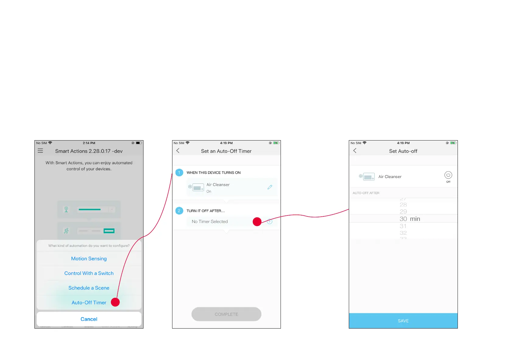 1. Tap Auto-O Timer then select a device. 2. Set the time.