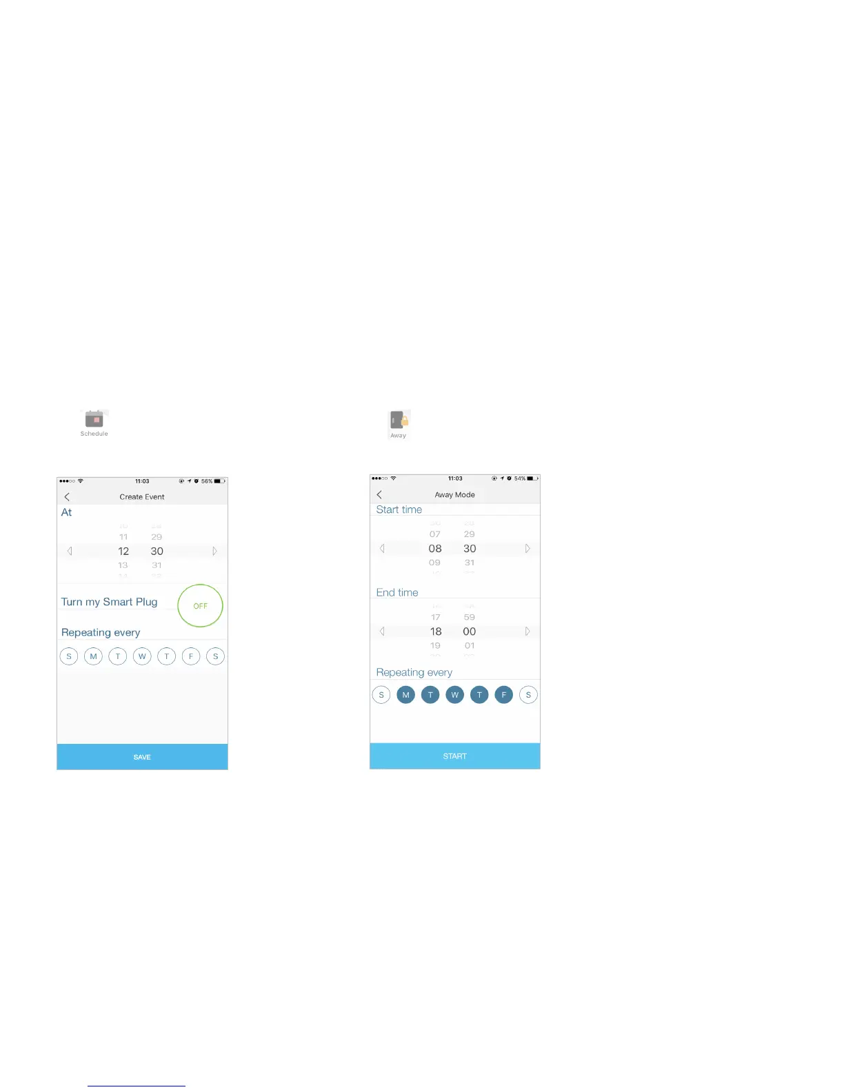 On Device Status page, you can set Schedule, preset Away Mode, set Timer, check Usage and change the settings of your smart outlet.