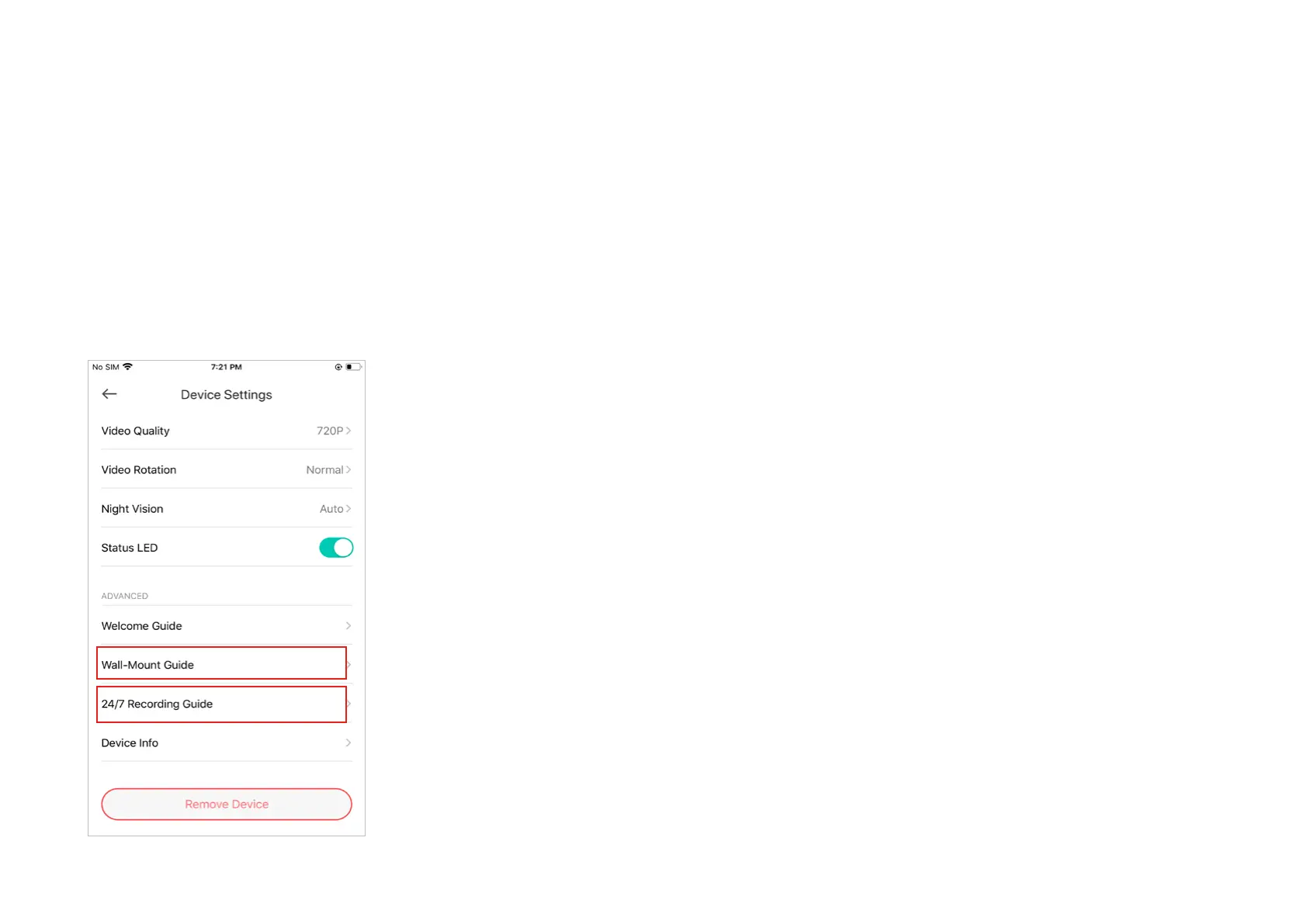 14. Get to know more about the wall-mount information or 24/7 recording information by tapping Wall-Mount Guide or 24/7 Recording Guide.