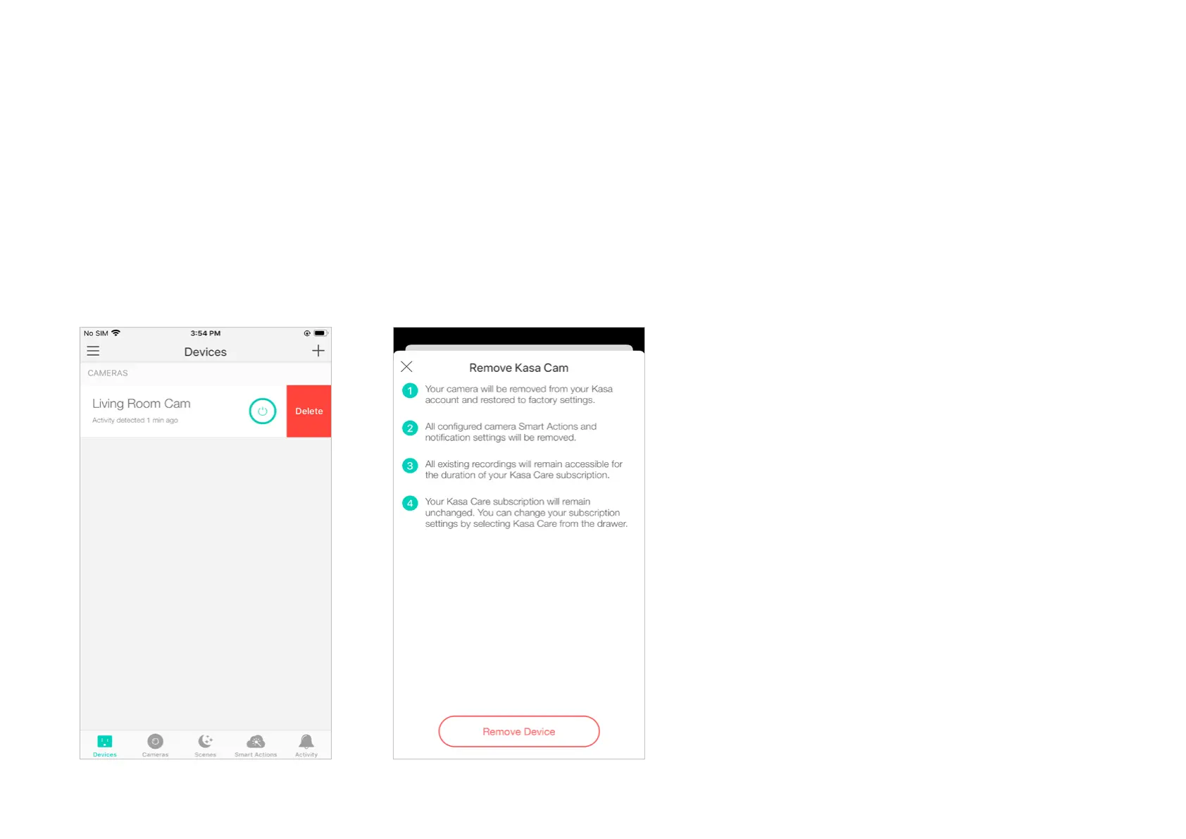 TP-Link Kasa Spot KC410S - Resetting Your Kasa Camera; Reset Method 1: Remove Device