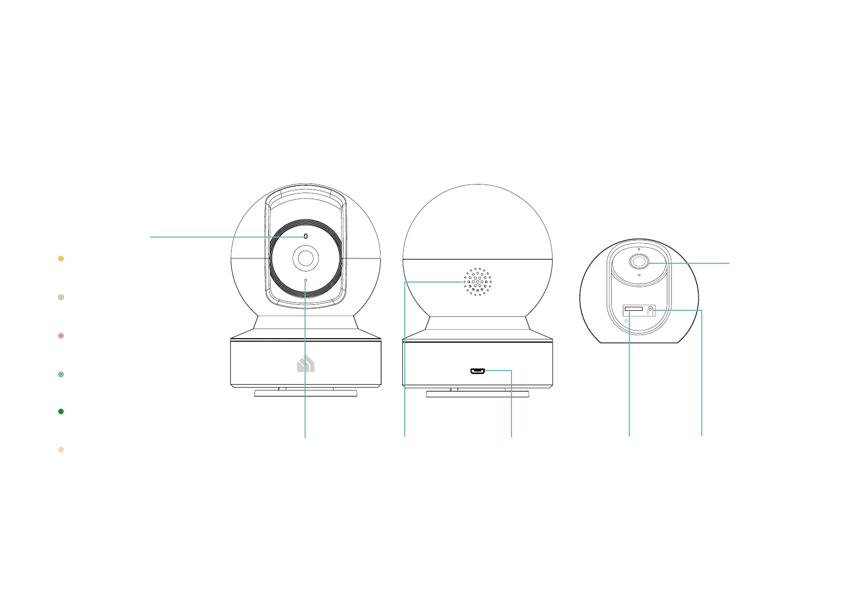 Kasa Spot Pan Tilt has a system LED that changes color according to its status, a lens, microphone, speaker, micro USB port, a SD card slot and a