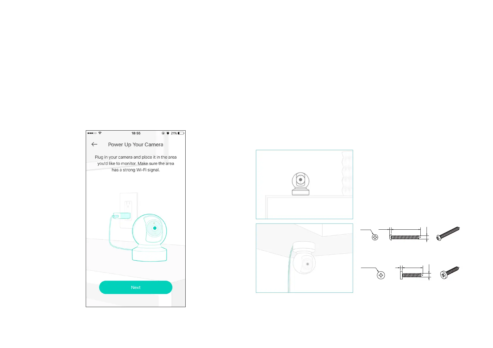 Place your camera on a at surface, or install it on a wall or ceiling with