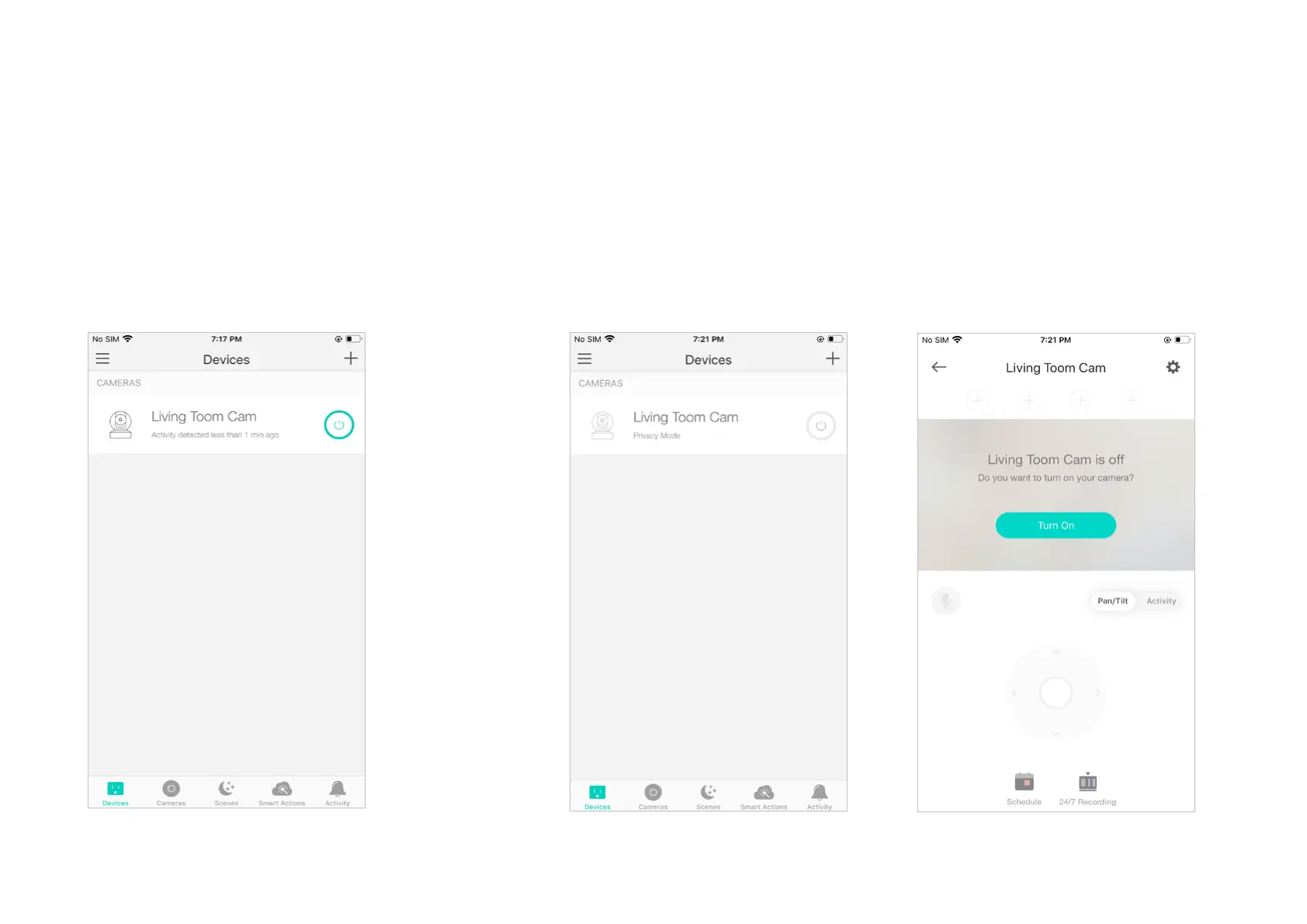 TP-Link Kasa Spot KC410S - Main Device Controls in Kasa App; Home Page Overview; Camera Power On;Off Function