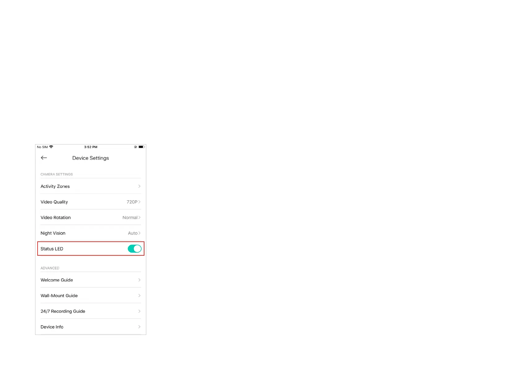 Turn on or off the status LED on the camera.