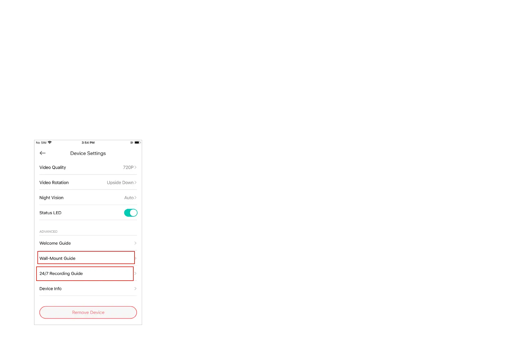 13. Get to know more about the wall-mount information or 24/7 recording information by tapping Wall-Mount Guide or 24/7 Recording Guide.