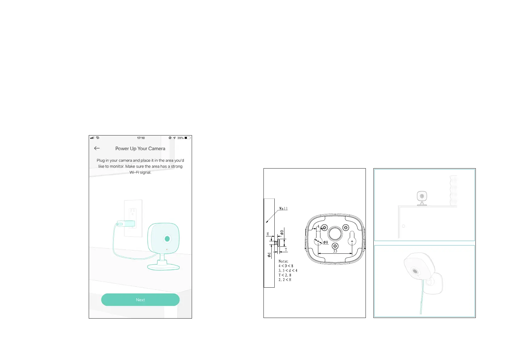 Place your camera on a at surface, or install it on a wall or ceiling with