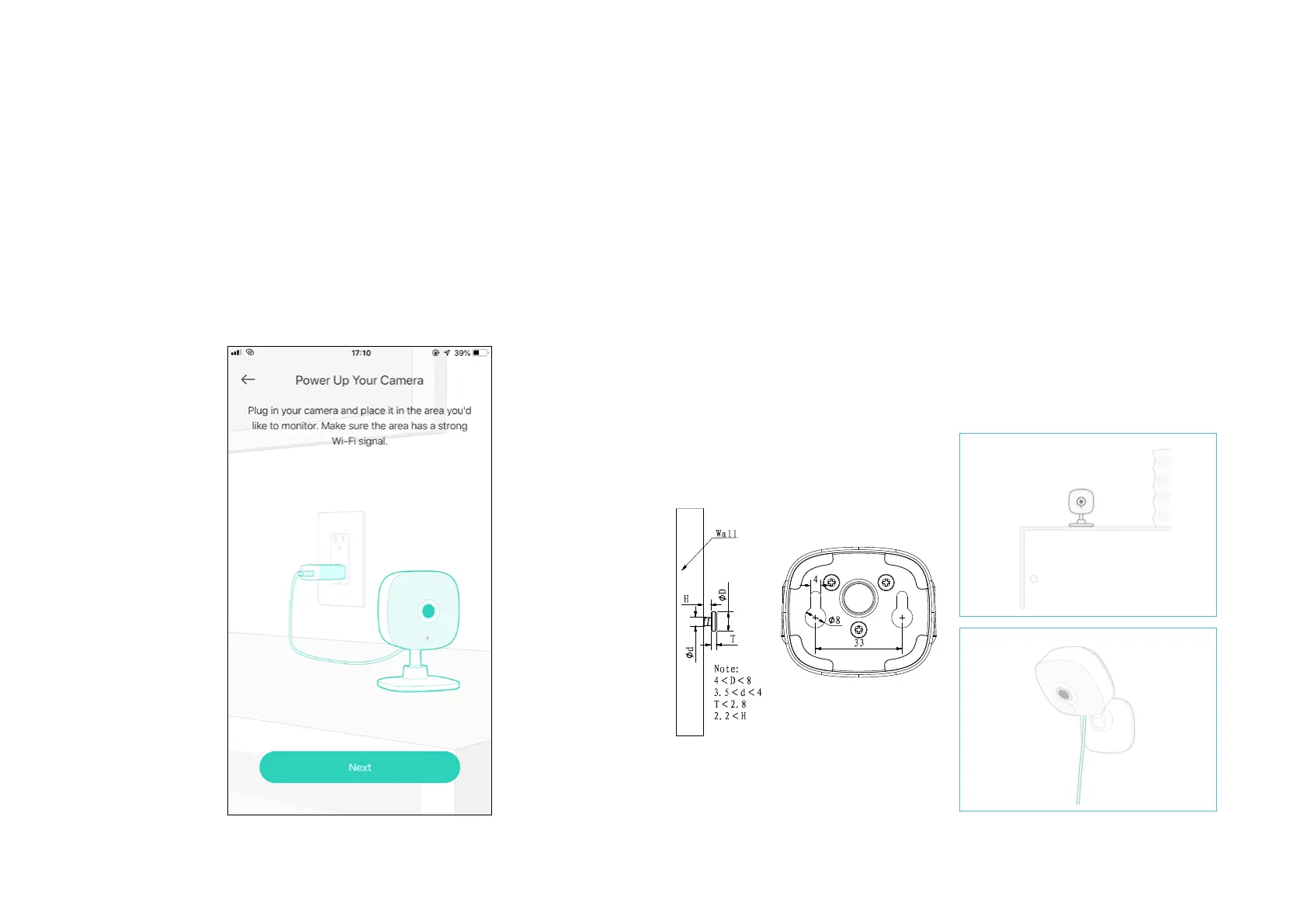 Place your camera on a at surface, or install it on a wall or ceiling with