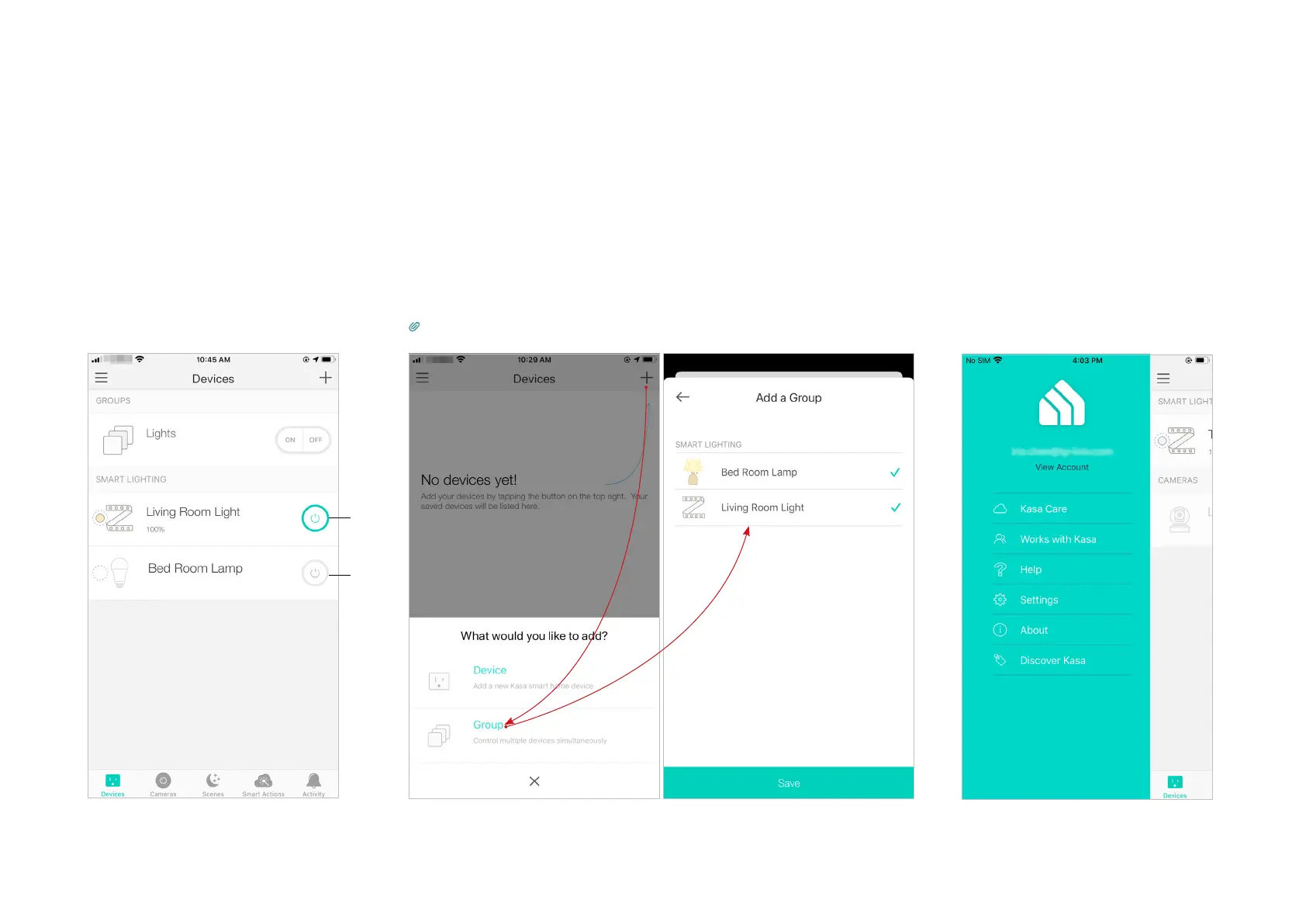 After you successfully set up your Light Strip, you will see the Devices page on the Kasa Smart app. You can add new devices, control multiple devices