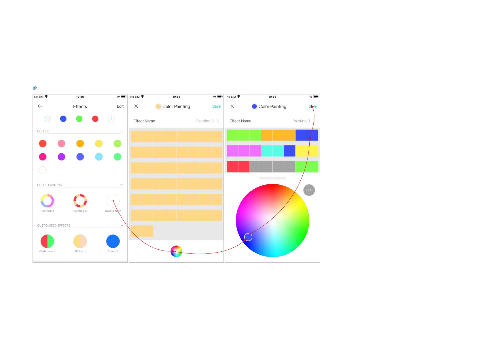 2. Tap the color palette and choose a color eect, then start painting on the Light Strip as you like.