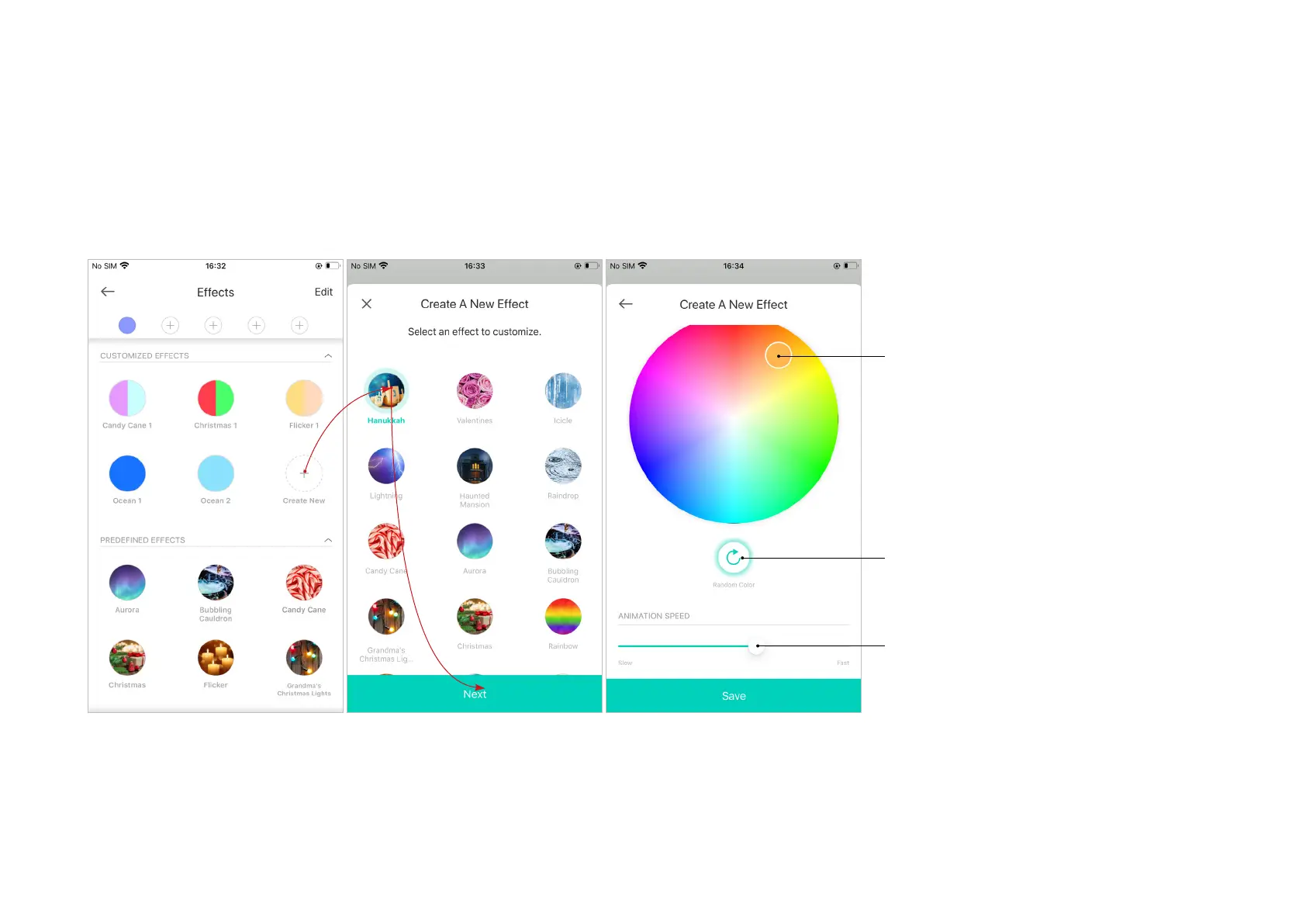 3. Customize the eect name, color eect and the animation speed as you want, then tap Save.