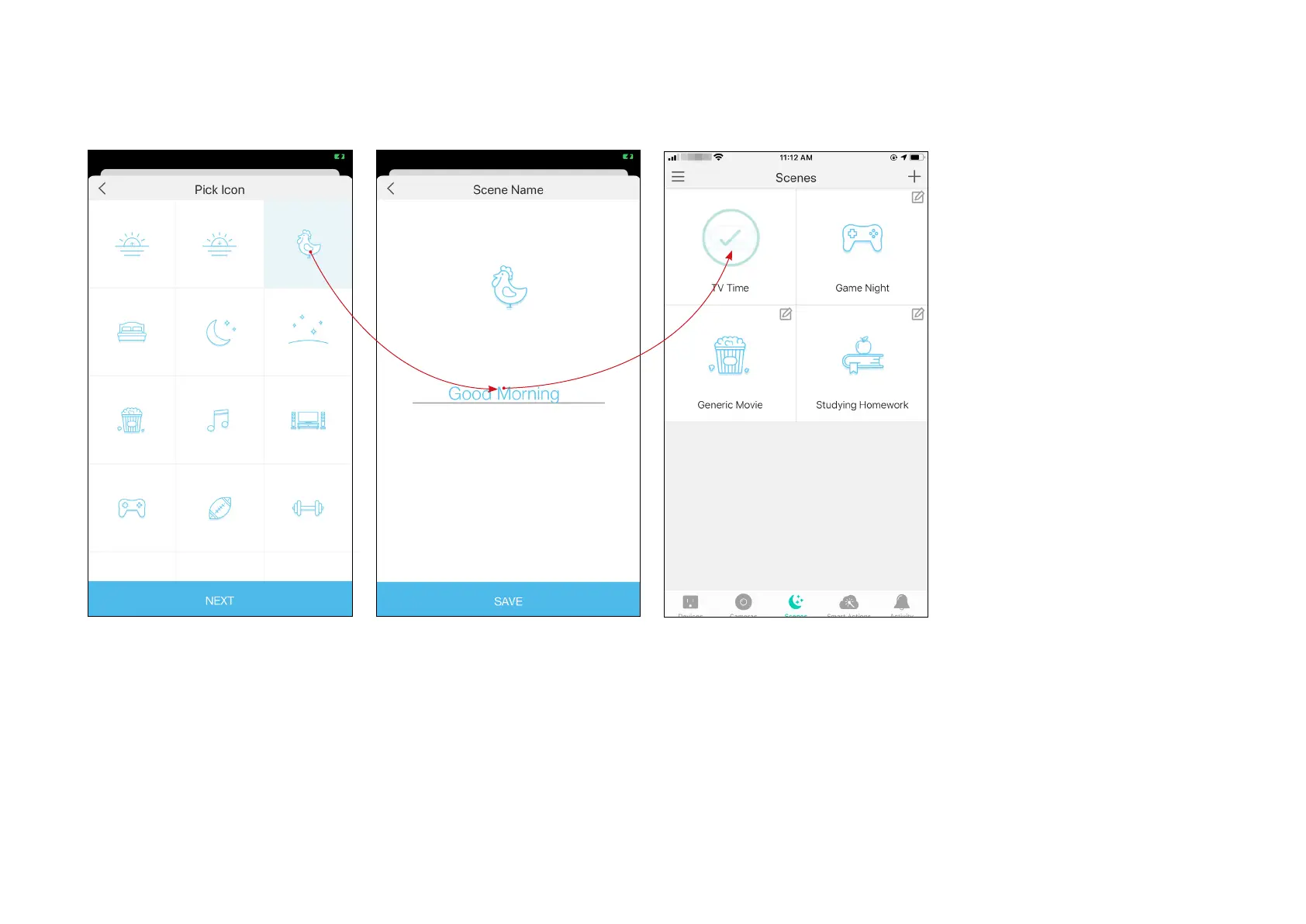 TP-Link KL420L5 - Select Scene Icon; Name Your Custom Scene; Apply and Activate Scenes