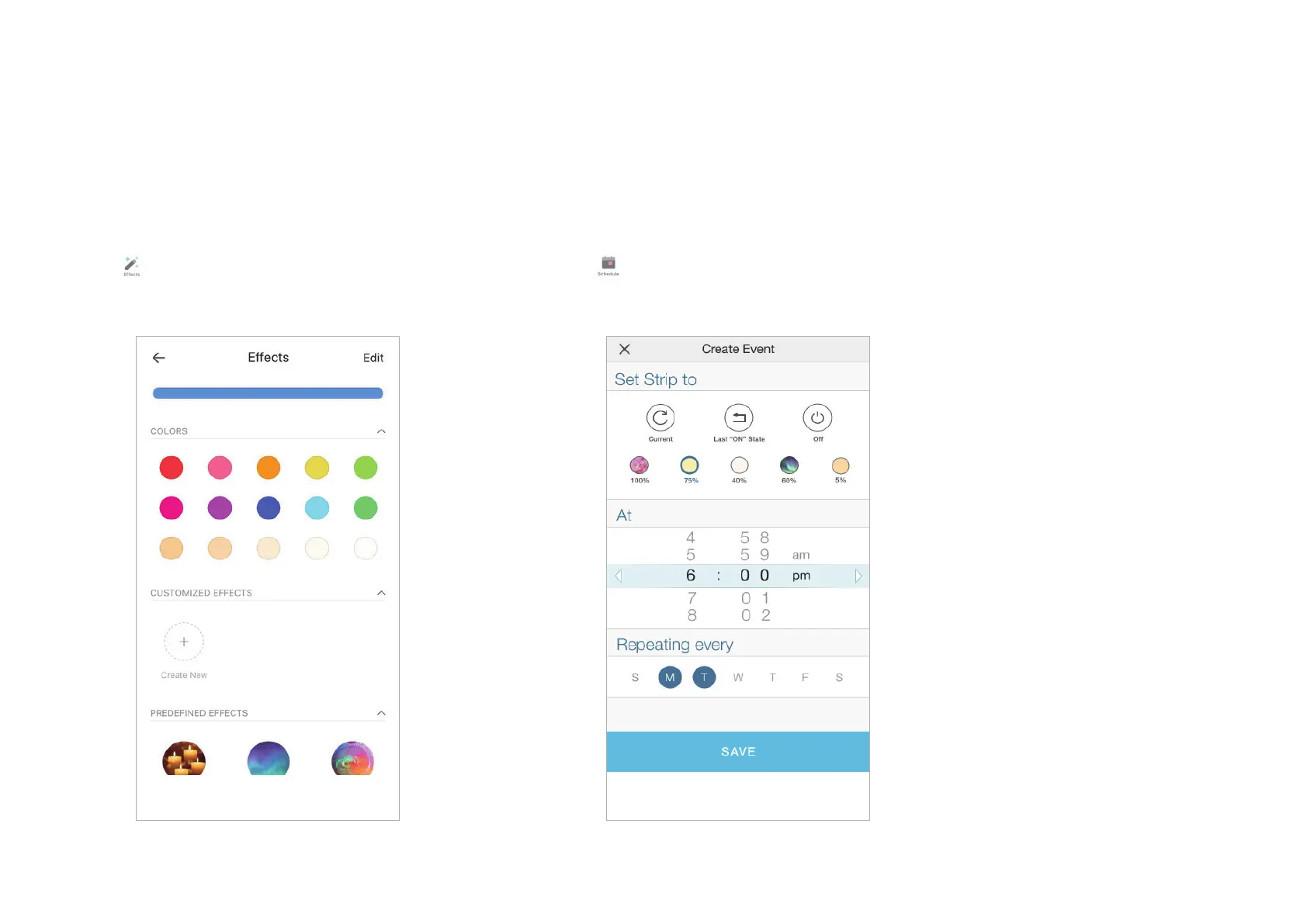 On the Smart Light Strip page, you can adjust the light color, set schedules, track energy consumption and change settings.
