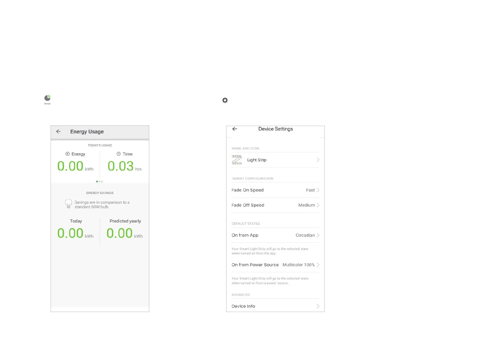 On the Smart Light Strip page, you can adjust the light color, set schedules, track energy consumption and change settings.