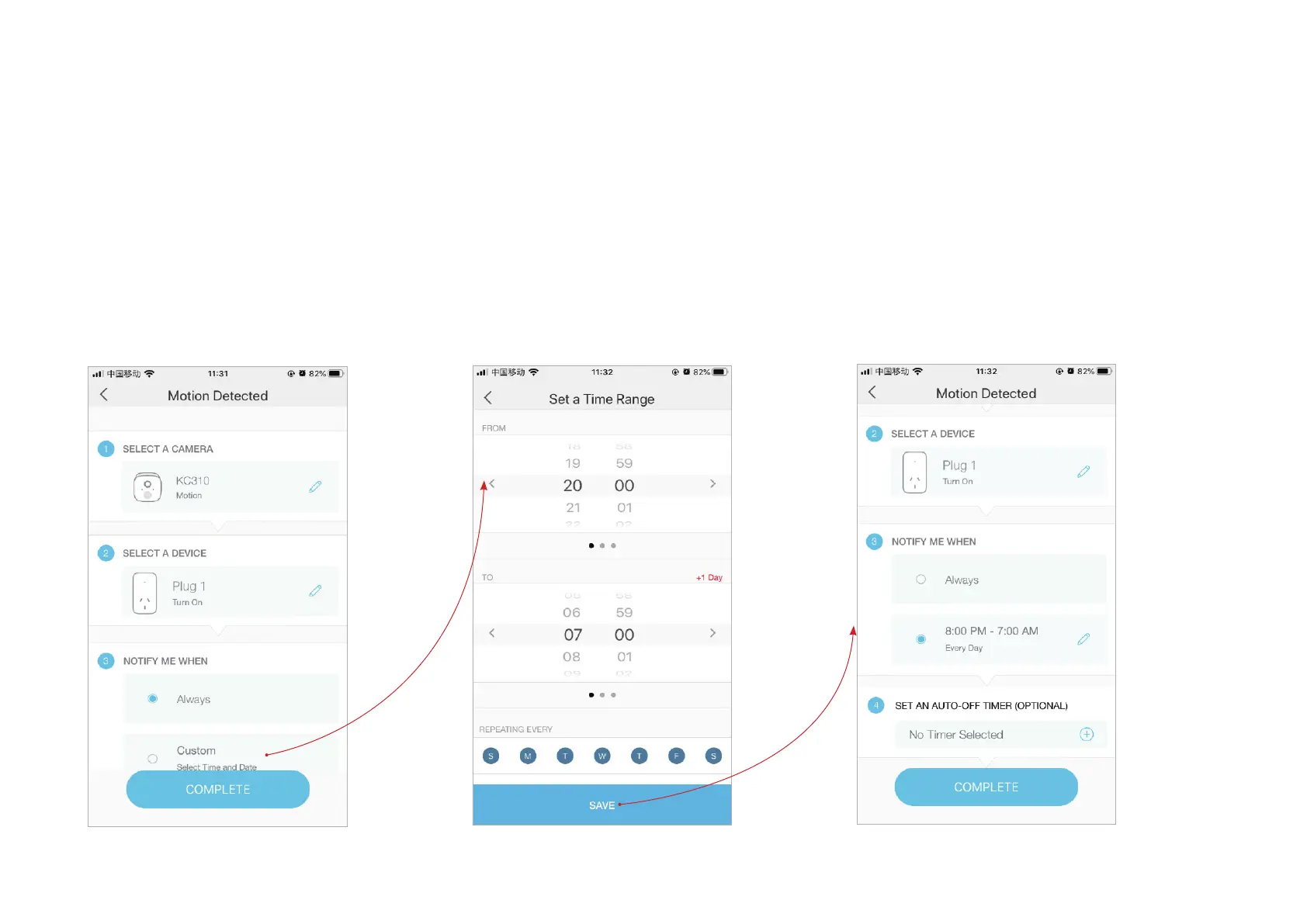 3. Set the time for the actions. You can choose Always or tap Custom to choose time according to your needs.
