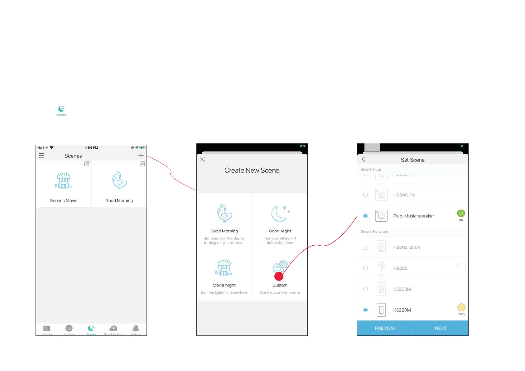 A scene is a preset group of smart devices that can be programmed, customized and activated simultaneously at the touch of a button from your