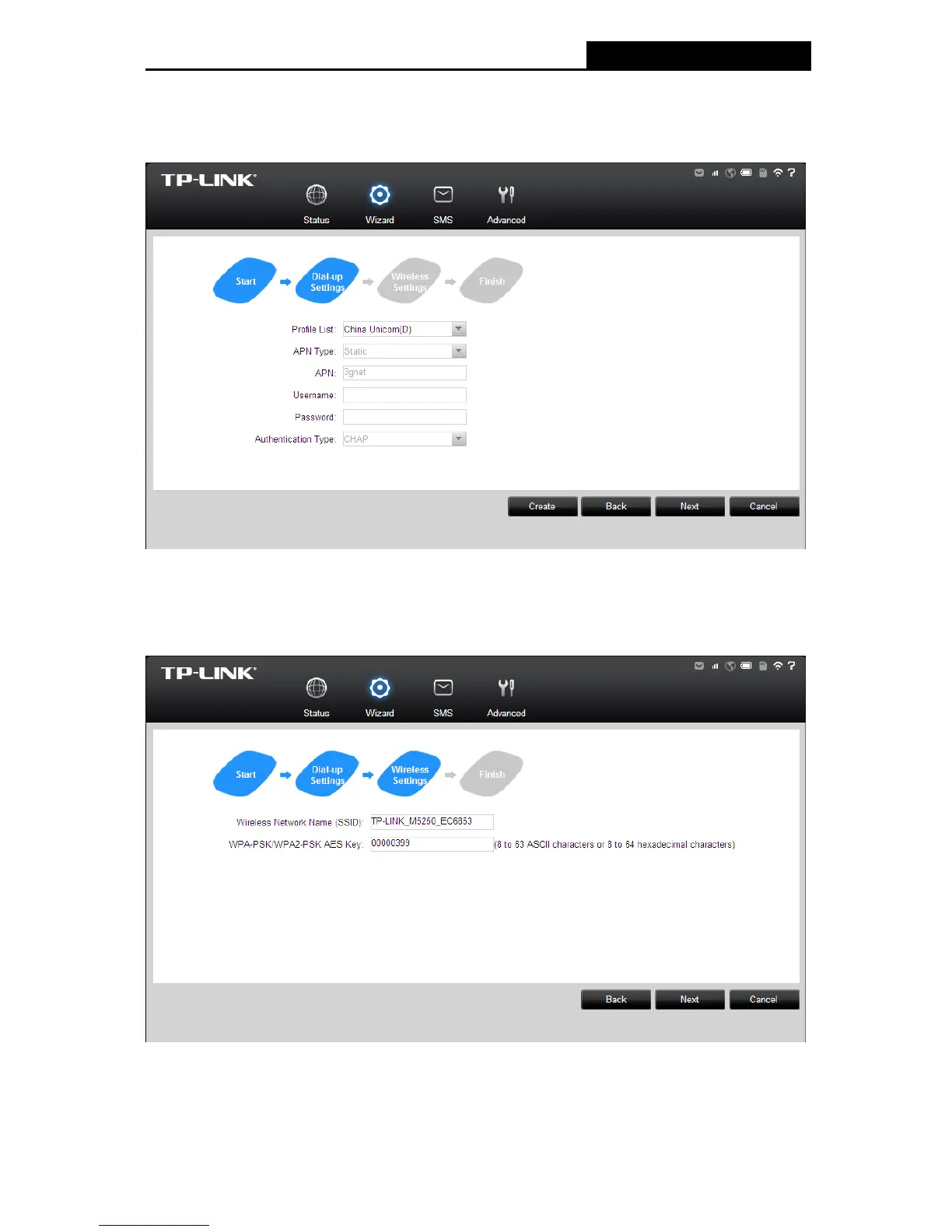 Figure 3-4 Wizard – Wireless Settings
