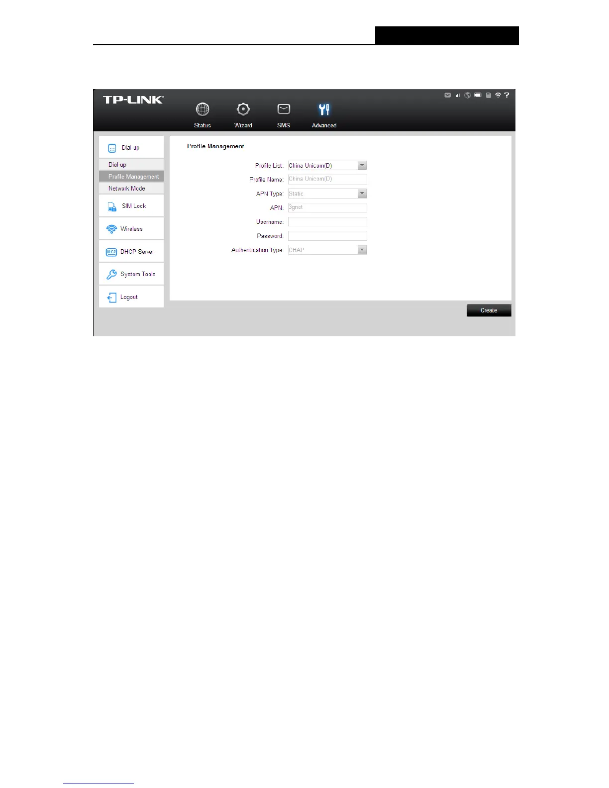 wrong, you can click Create to create a new profile with the right settings (as shown in