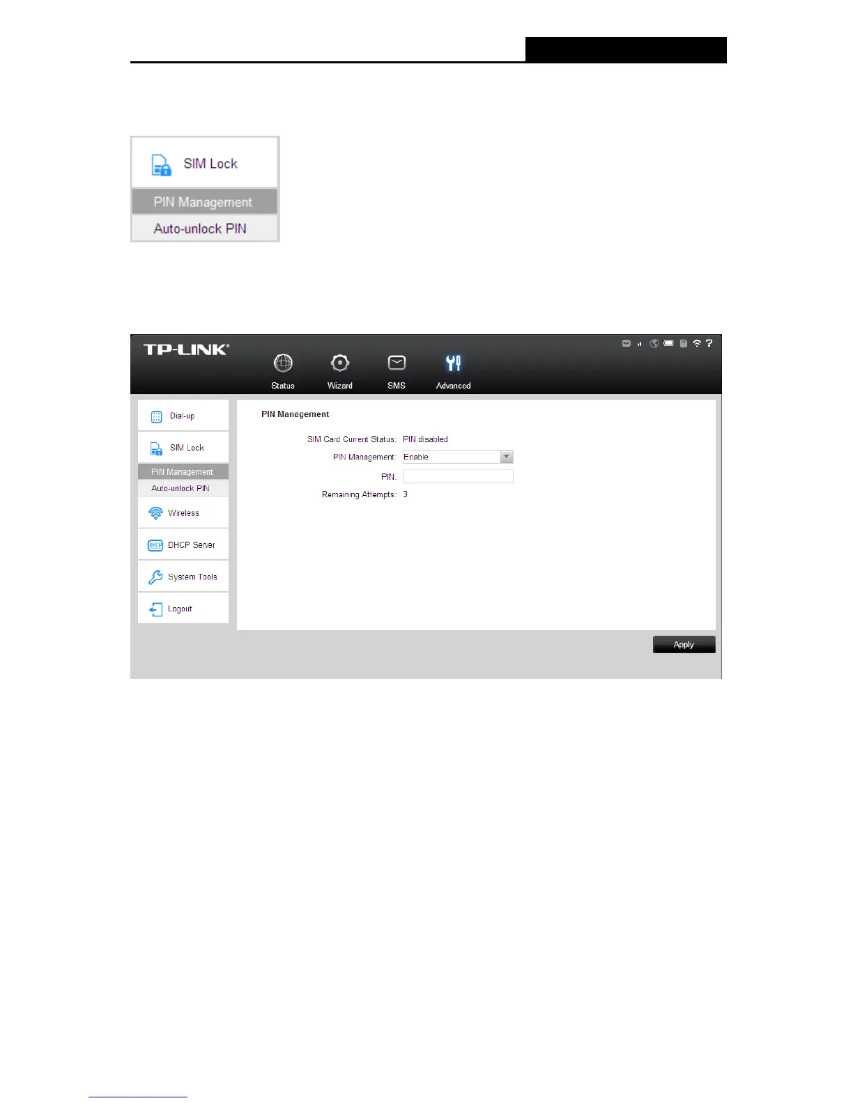 click Apply to make your settings take effect. While, if the SIM card’s current status is PIN
