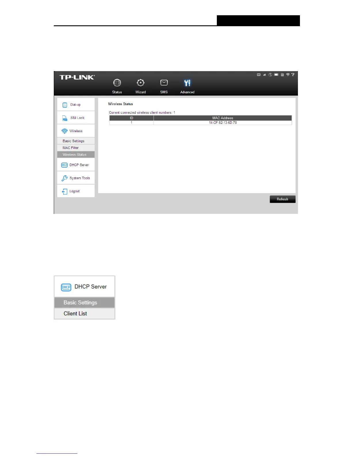 Click Refresh to update the amount of the Wireless clients and their information.
