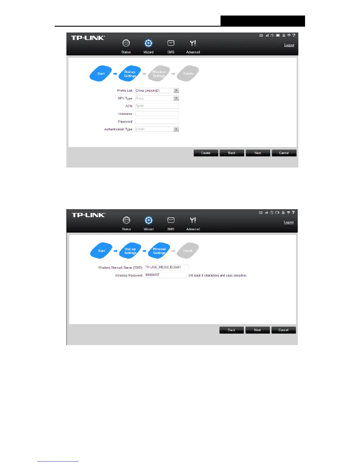 network name (SSID) as well as Wireless Password, or you can keep it default. Then click