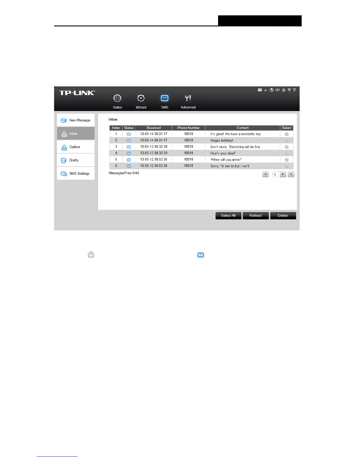 Click Refresh to refresh the inbox, and get any new message(s).