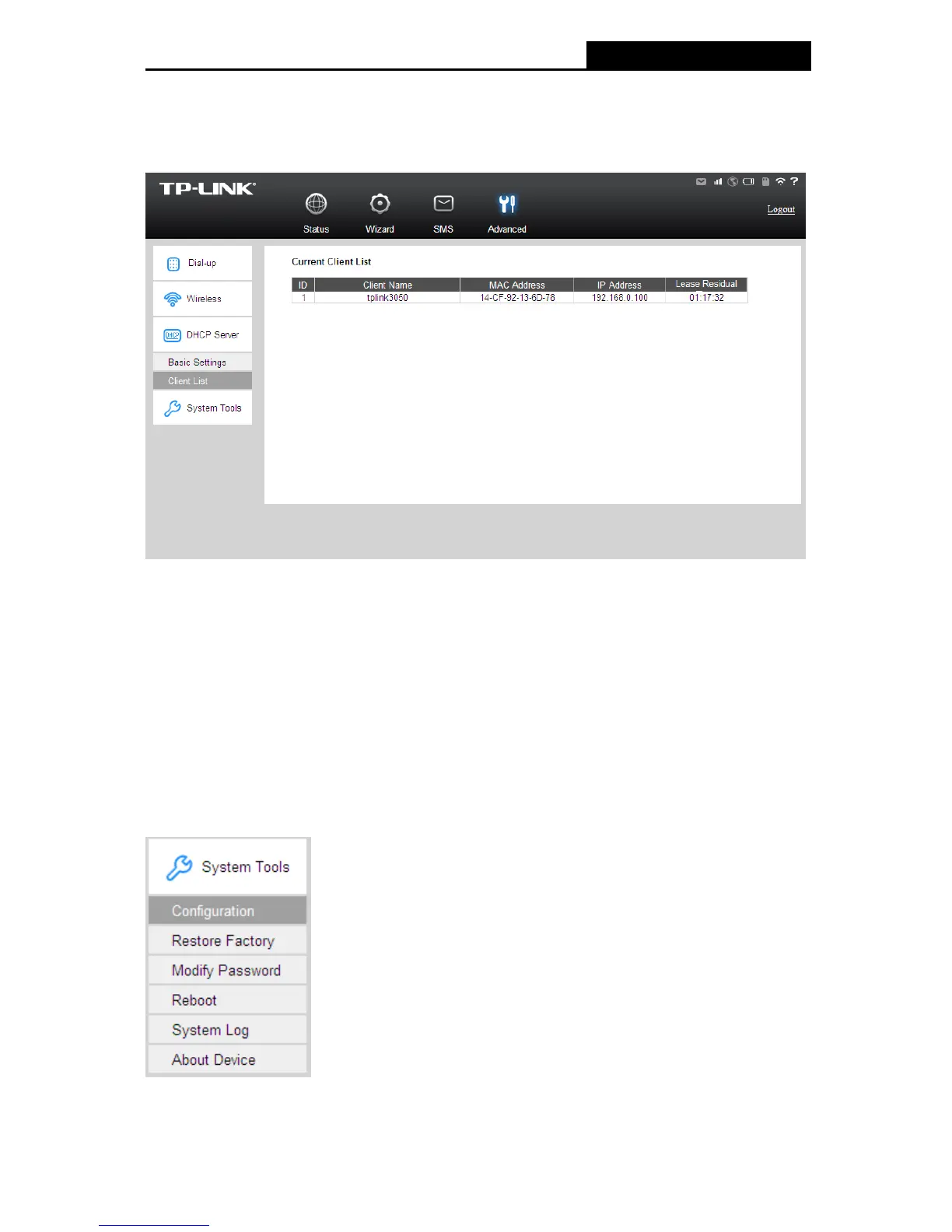 Lease Residual : The rest lease time for the IP address assigned to the DHCP client. The