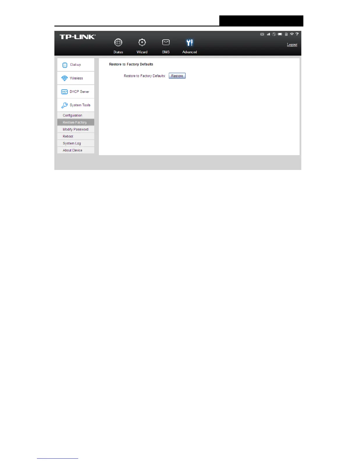 Restore to Factory Defaults: Click Restore to reset all configuration settings to their