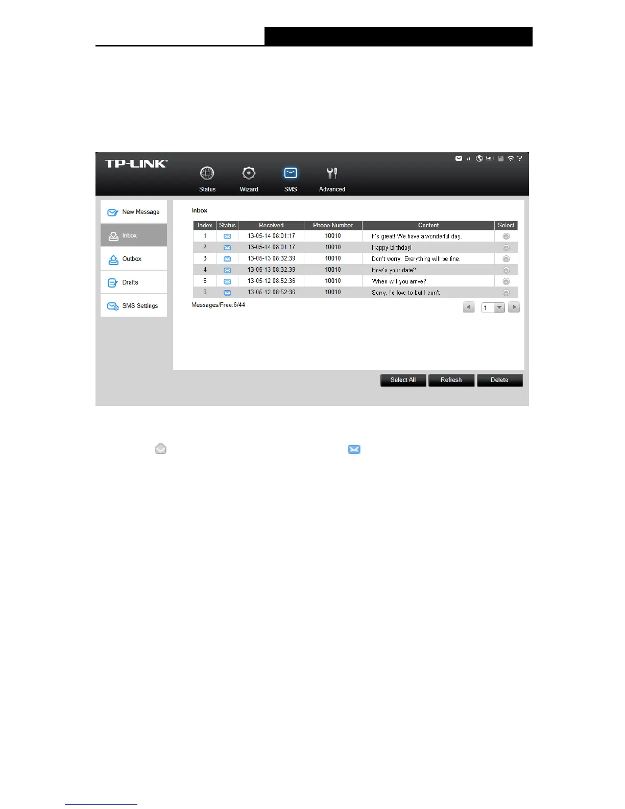 Click Refresh to refresh the inbox, and get any new message(s).
