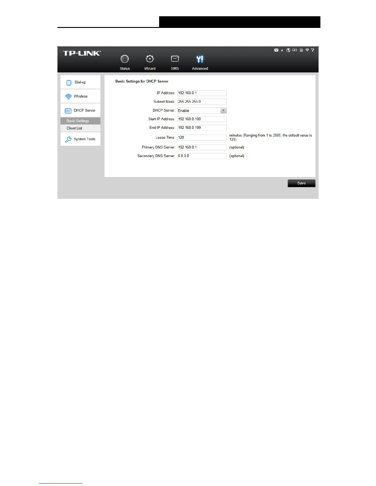 DHCP Server: You can select to enable or disable the DHCP server. If you disable the