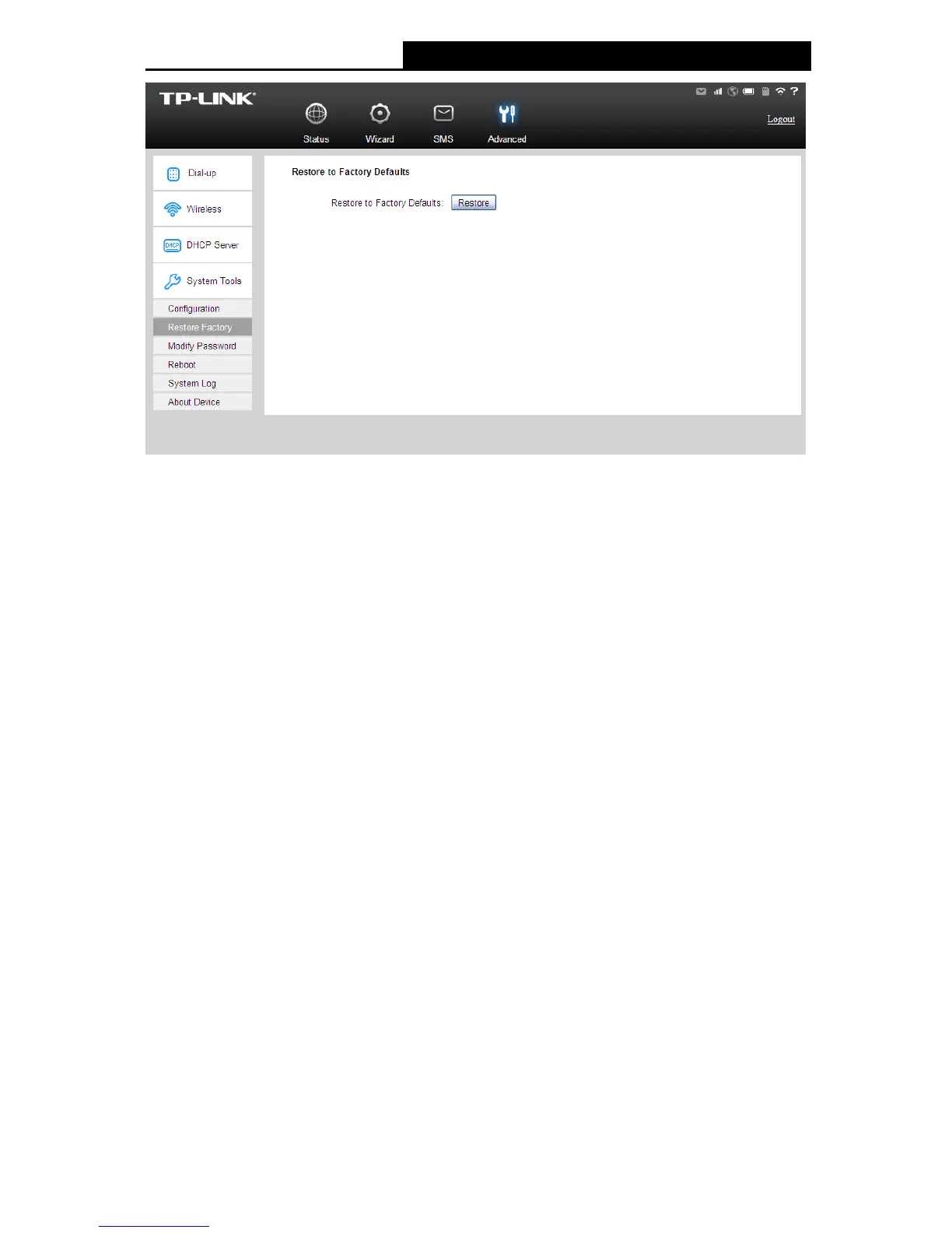 Restore to Factory Defaults: Click Restore to reset all configuration settings to their