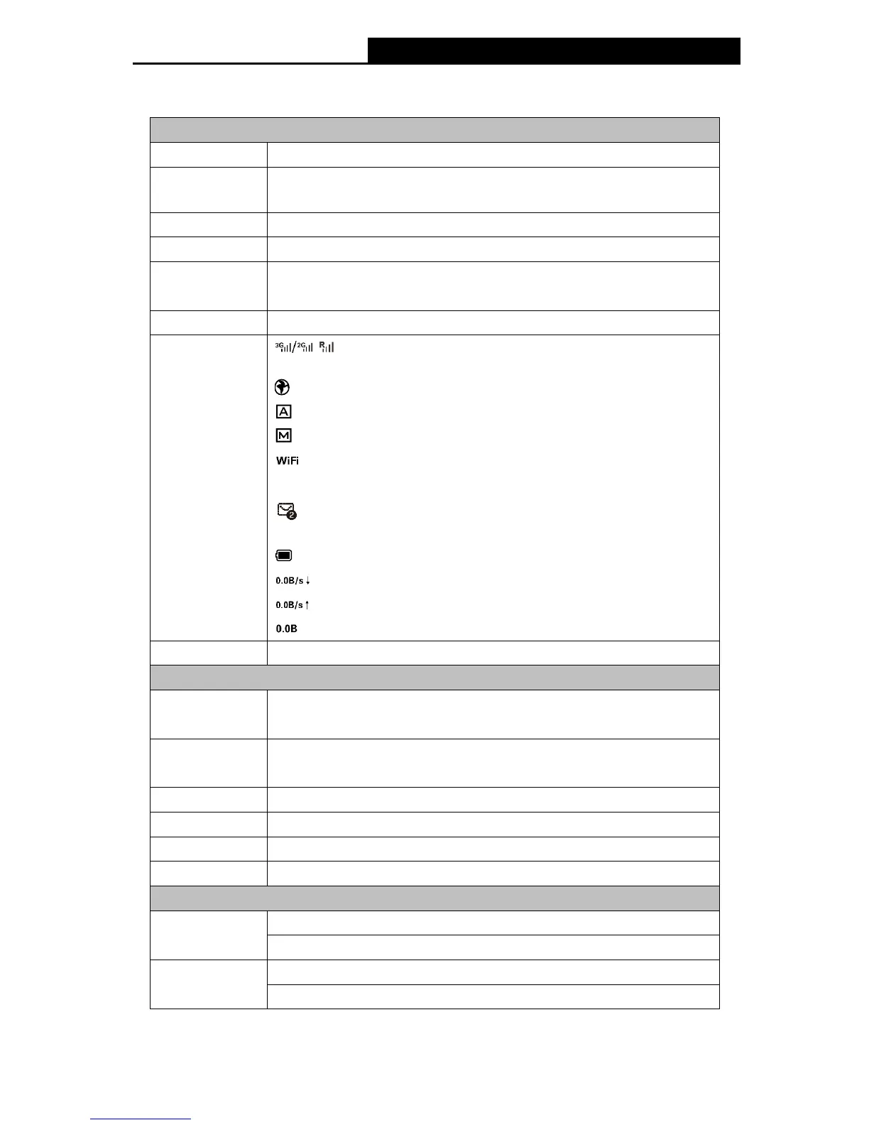 Displays the Wi-Fi status and the amount of current wireless