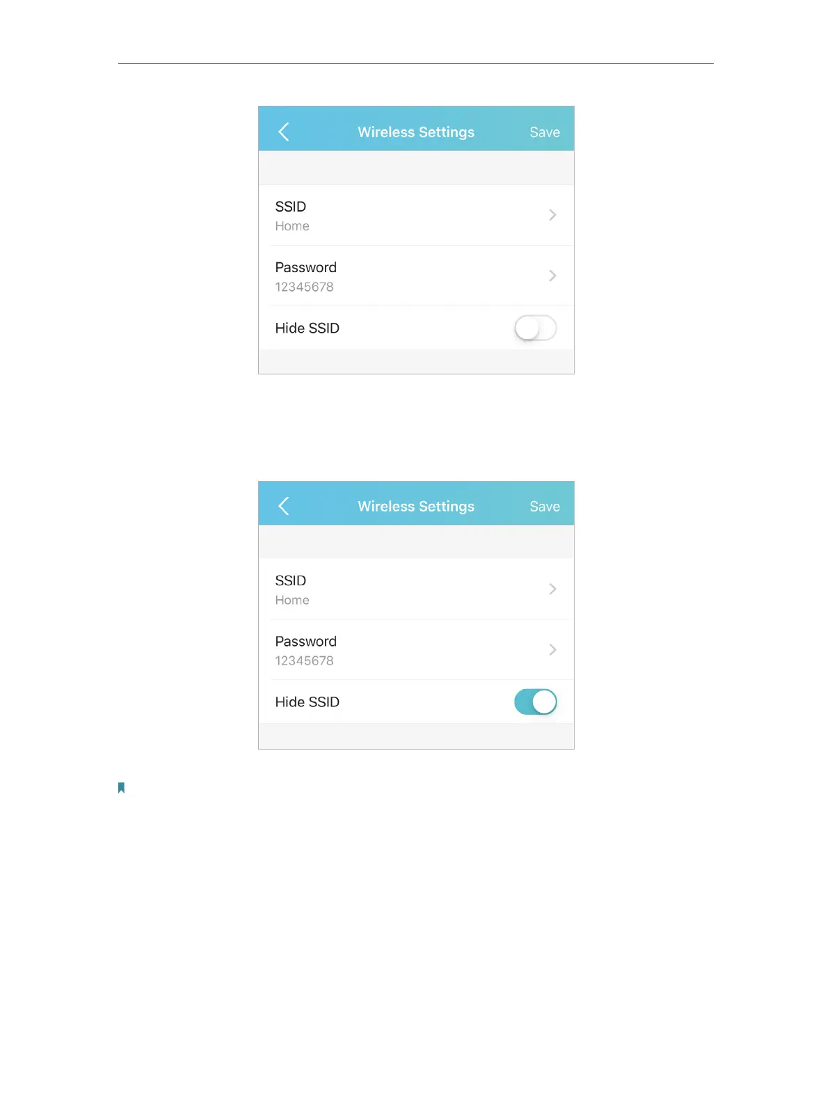 1. Toggle on Hide SSID, so the SSID will not be displayed when you scan for