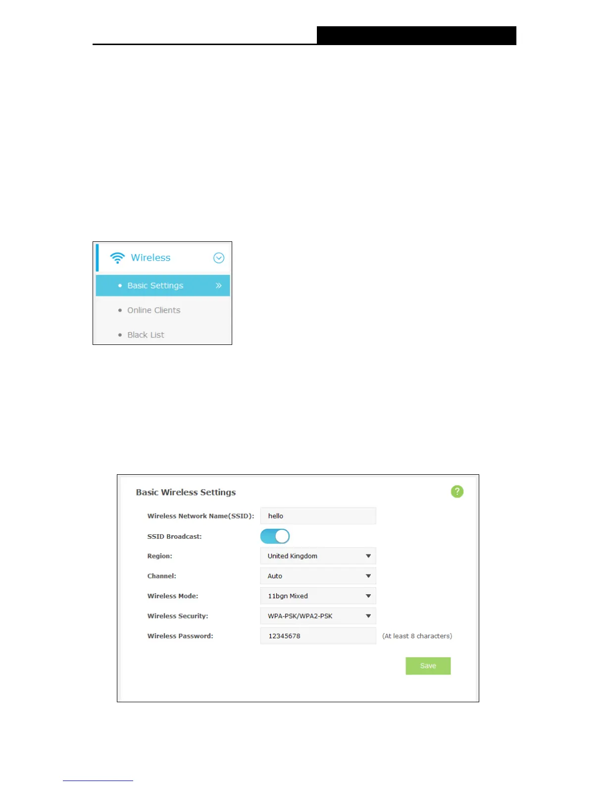 You can configure basic wireless settings on this page.
