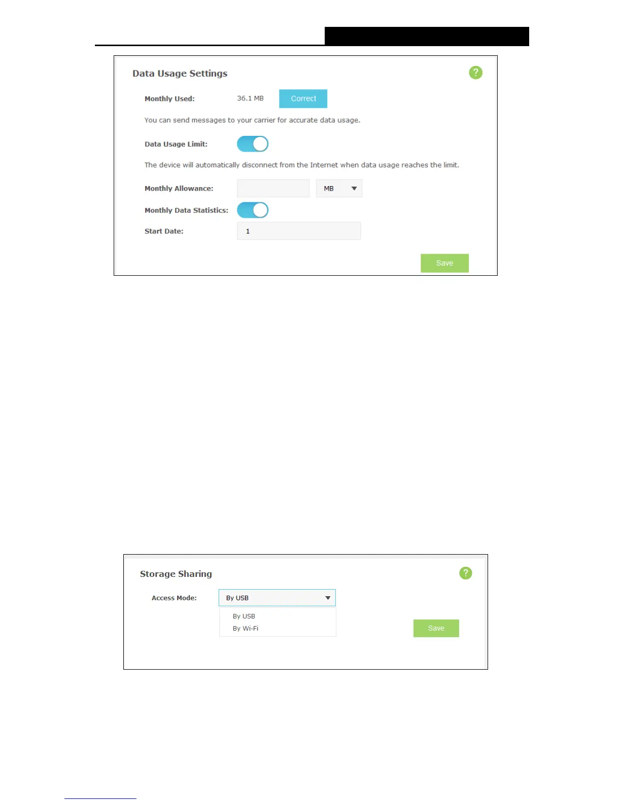Total/Monthly Allowance: Set the allowed amount of total/monthly data. When data