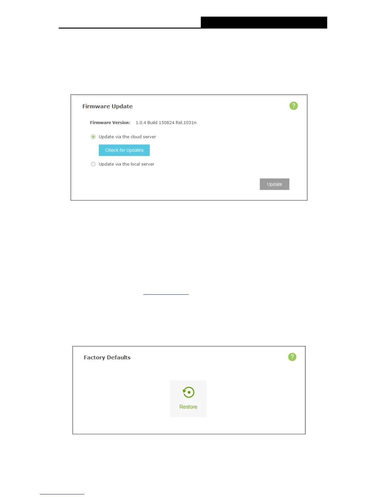 Update via the cloud server: Update your firmware automatically by using the Internet.
