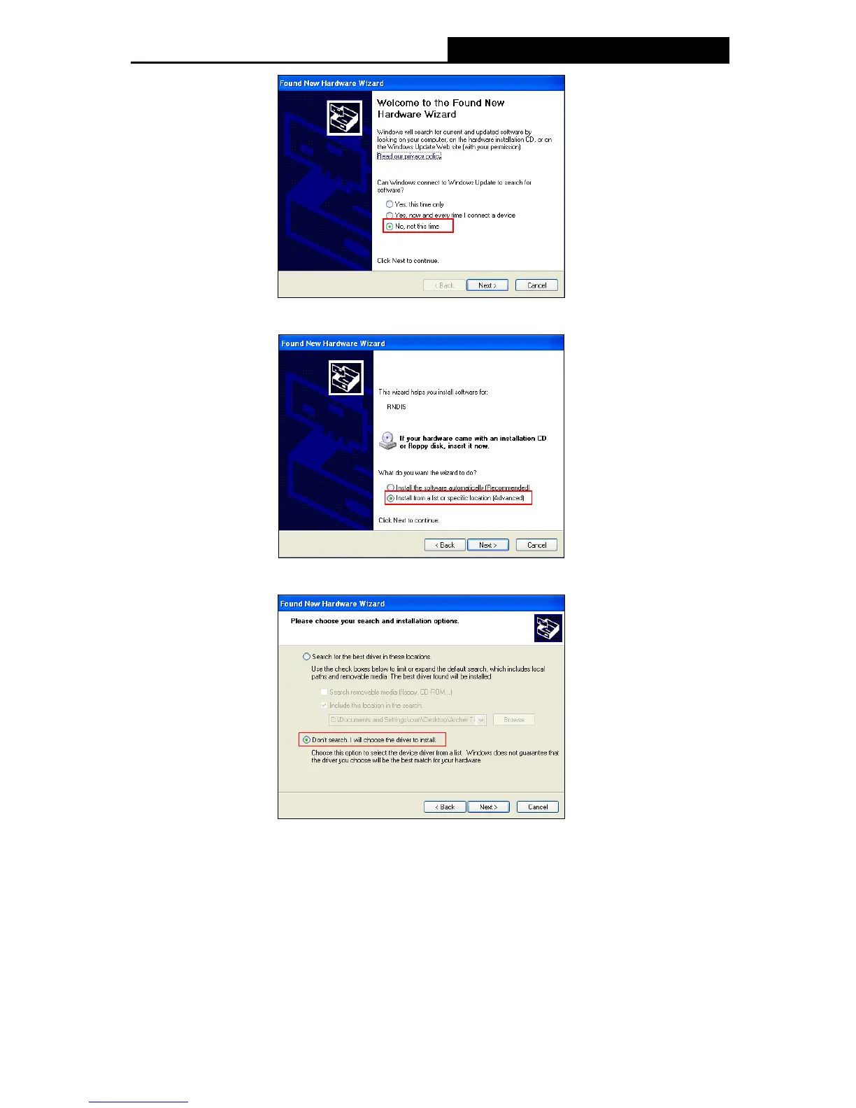 Step 3: Choose "Don't search. I will choose the driver to install." and click next.