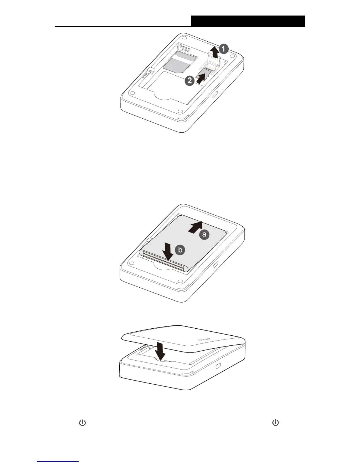 1) Touch the metal contacts of the battery to the metal points of the Device, and then press to