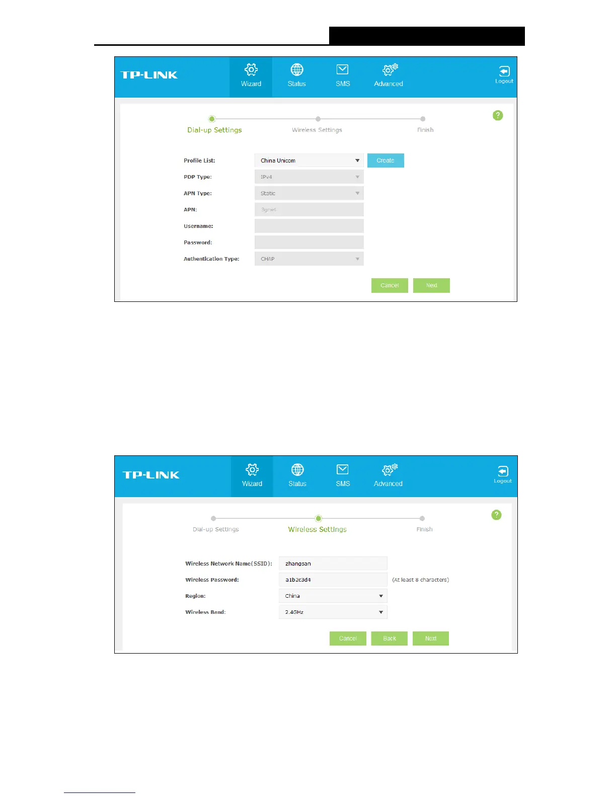 Figure 3-4 Wizard – Wireless Settings