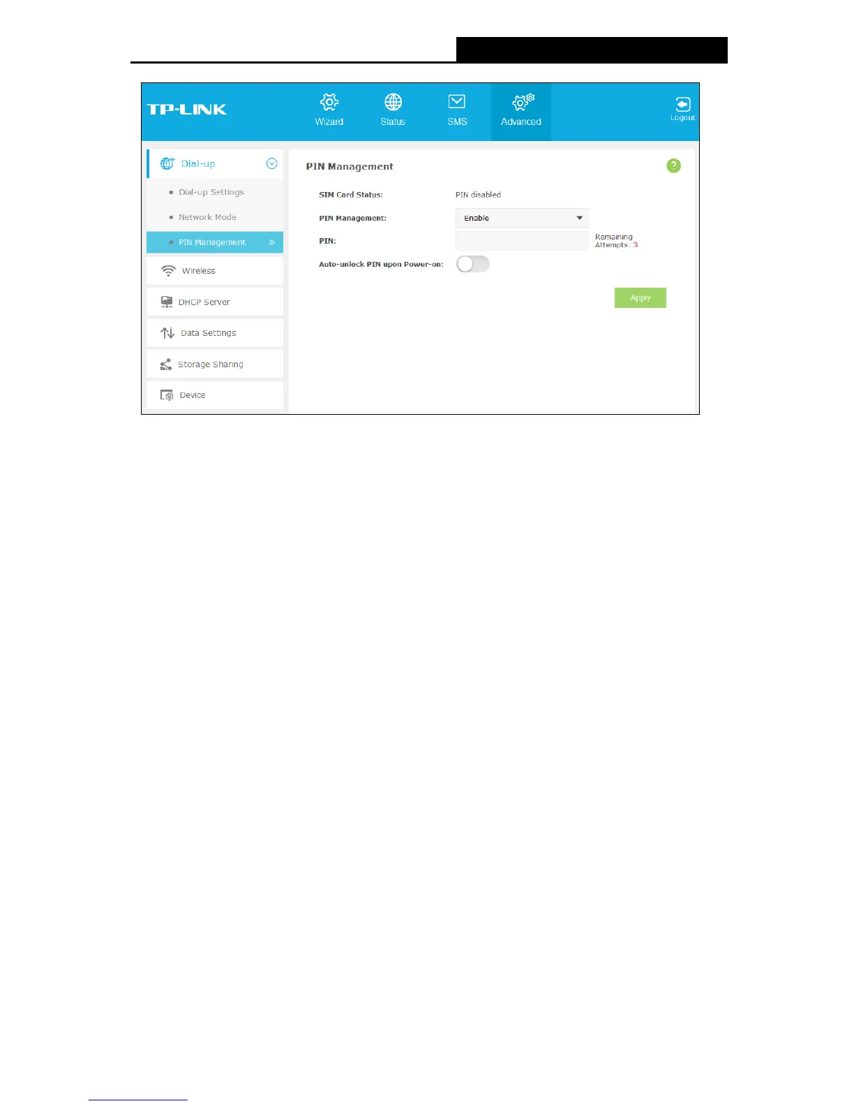 click Apply to make your settings take effect. While, if the SIM card’s current status is PIN