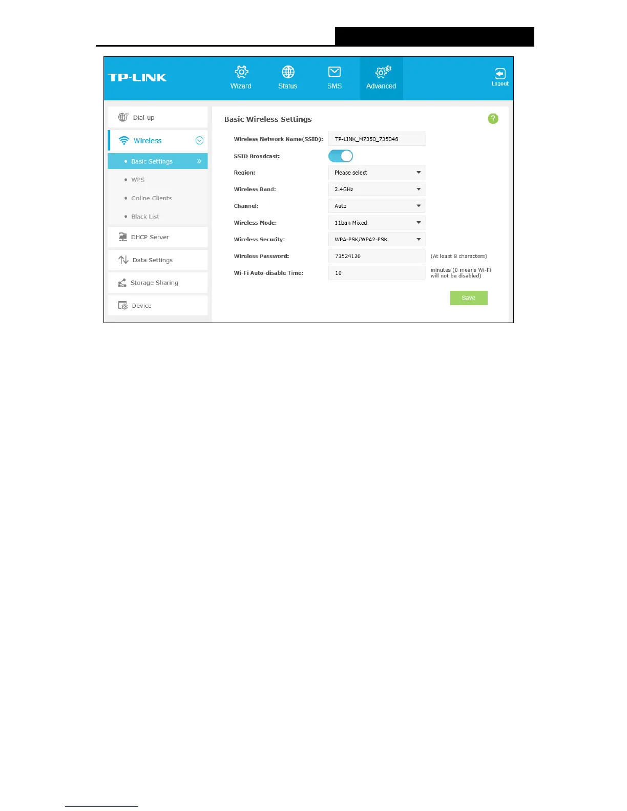 TP-LINK_M7350_XXXXXX (XXXXXX stand for the last 6 characters of the MAC address of