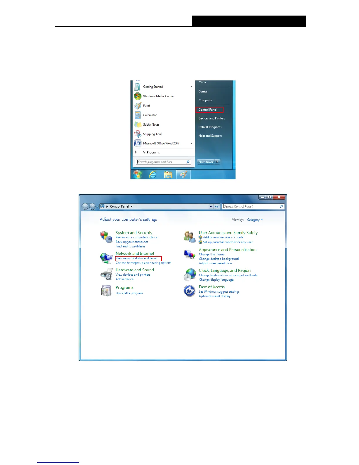 1) On the Windows taskbar, click the Start button, and then click Control Panel.