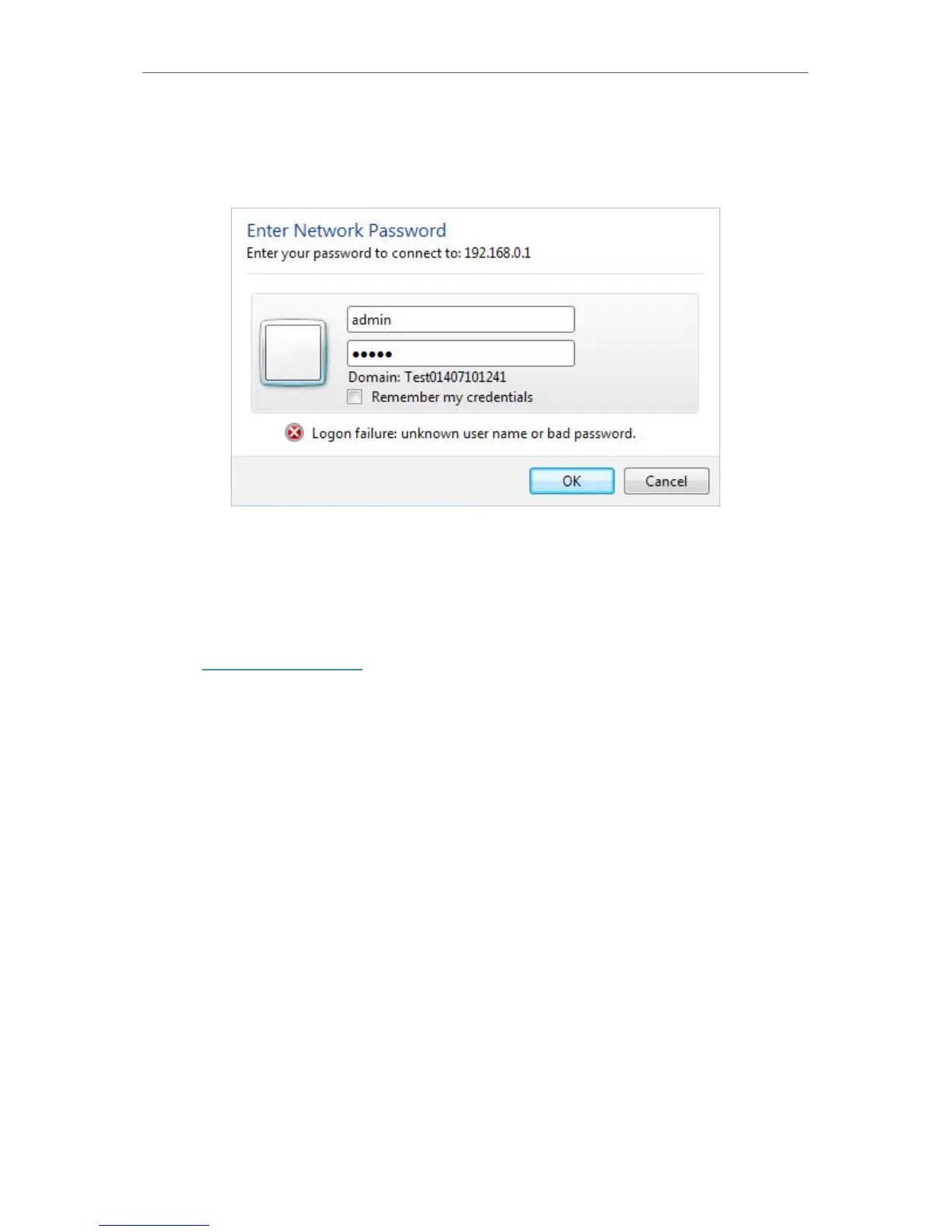 enter the login username and password in the authentication window and