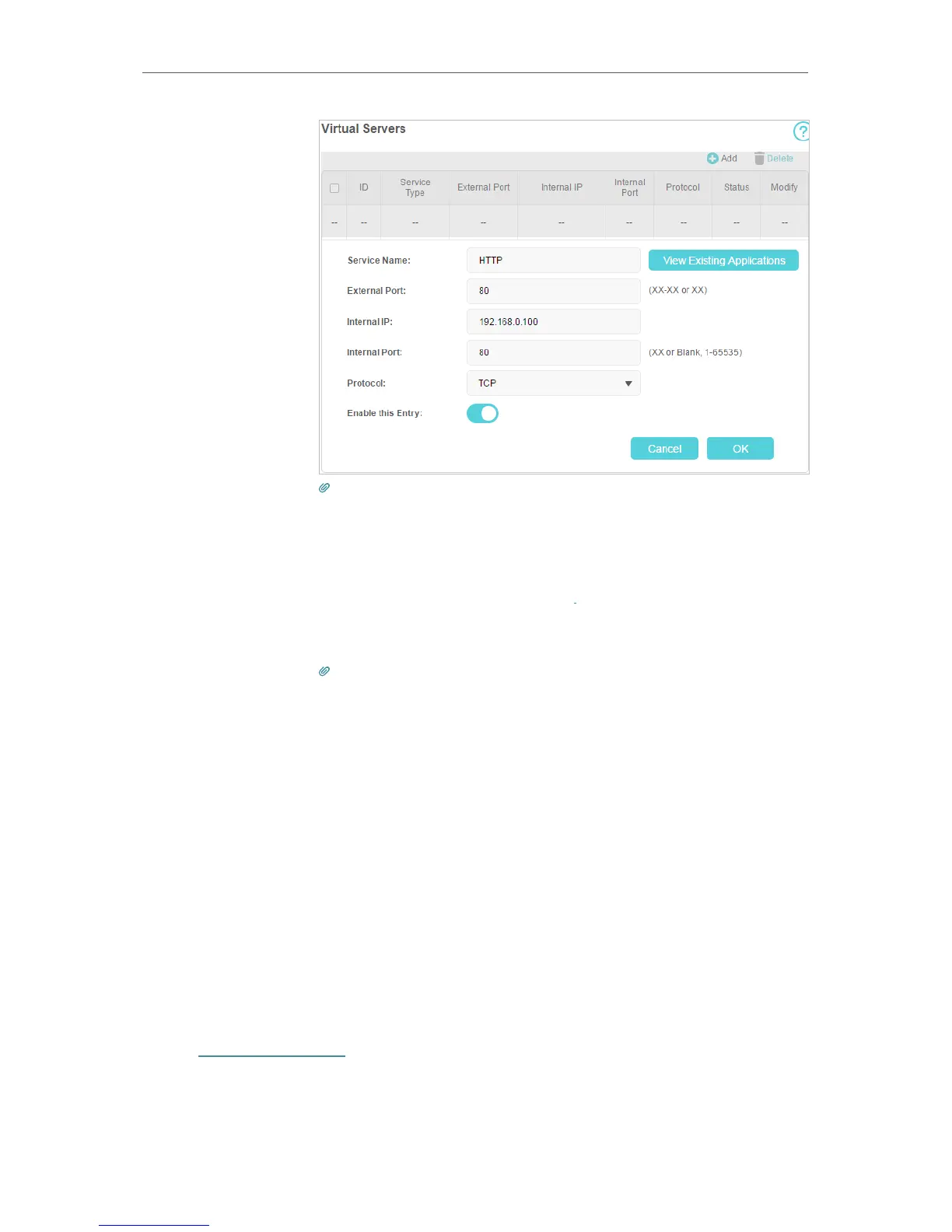 • It is recommended to keep the default settings of Internal Port and Protocol if you are