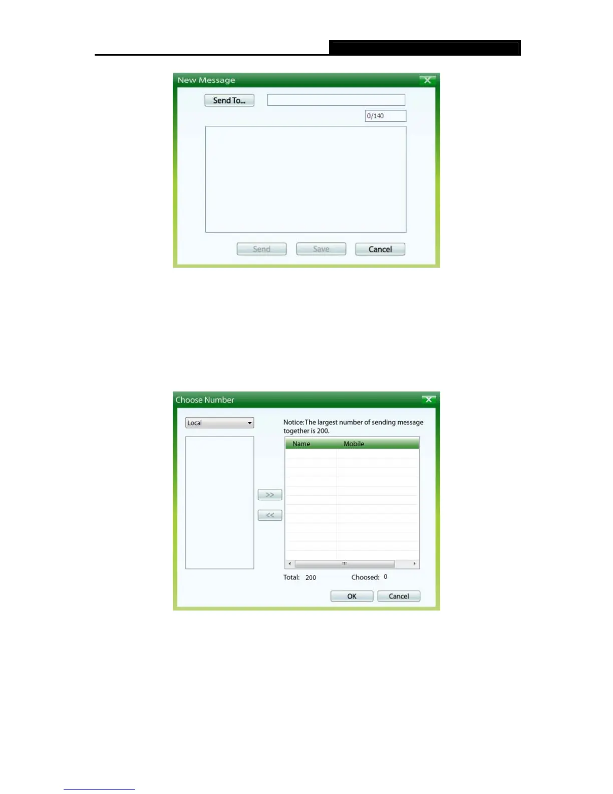 2) Click Send to… and then select a number in the Choose Number interface, as shown in