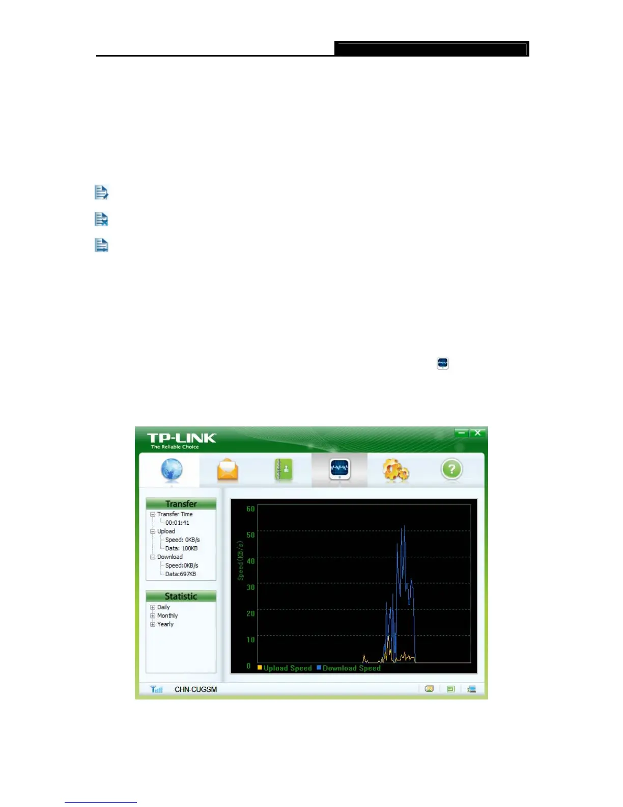 This function allows you to view the current network traffic. Click on the icon , and you will see