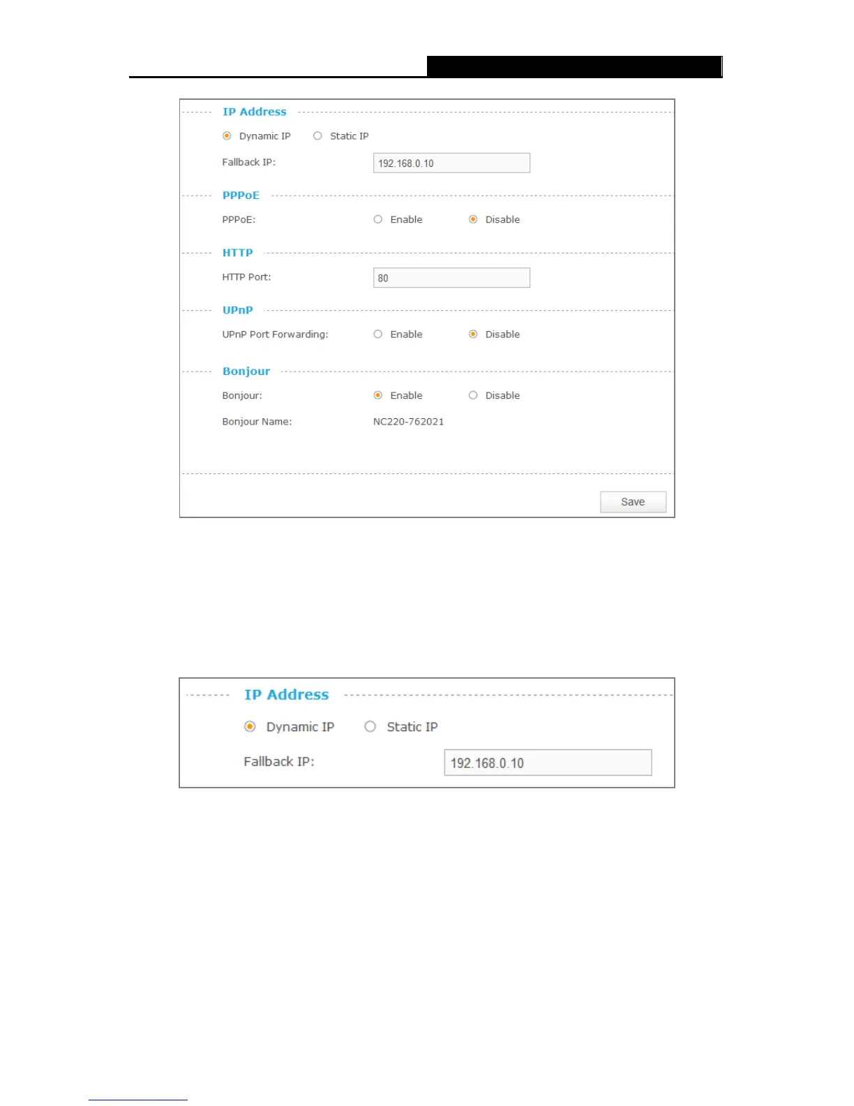 Fallback IP: If the camera cannot get a Dynamic IP address from a DHCP server within